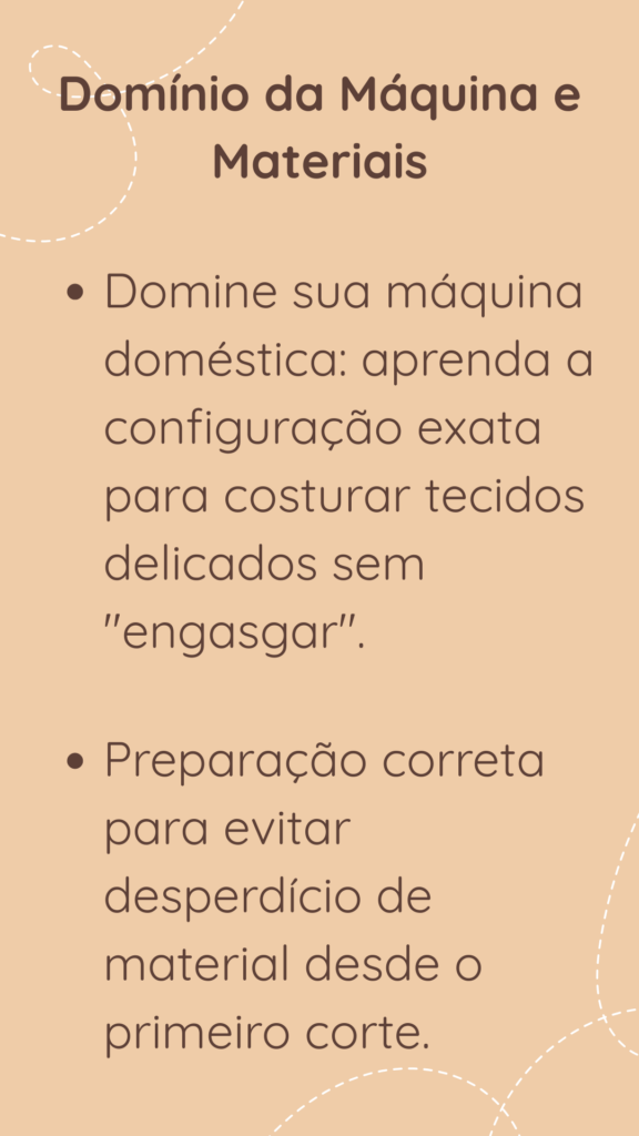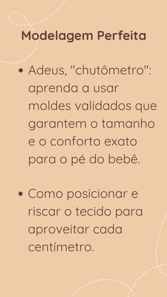 Nosso curso é 100% prático e focado no seu aprendizado. Eu guio você em cada etapa: desde a seleção cuidadosa dos tecidos até a precisão do corte , a costura e o domínio total da sua máquina.