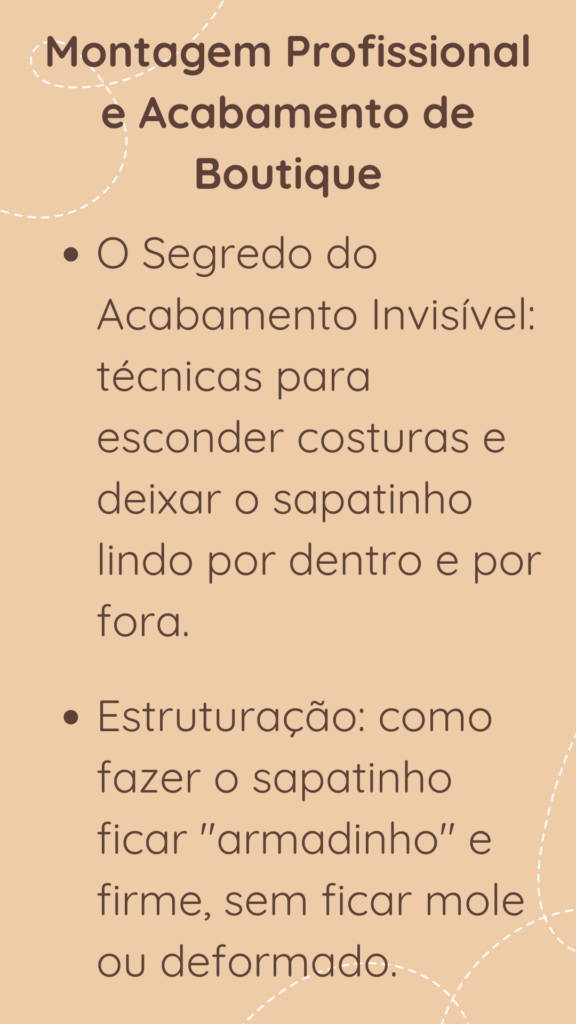 Se você fosse comprar moldes avulsos e pagar uma aula presencial de costura, gastaria facilmente mais de R$ 300,00. Se você vender apenas 2 parzinhos de sapato, você já recupera todo o valor investido no curso. O resto é lucro puro para você.