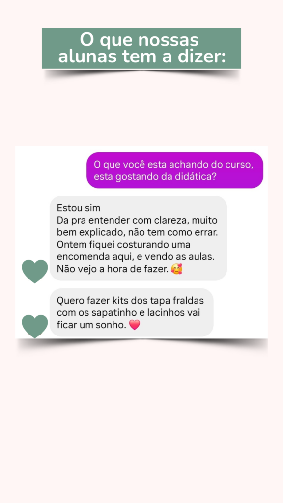 Sim! O curso é ideal para iniciantes. Eu vou te ensinar o passo a passo, de forma prática, desde o início — mesmo que você nunca tenha costurado antes.